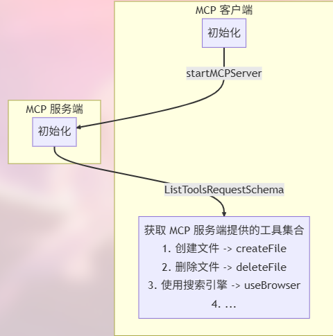 假设我们的软件已经支持了 MCP 客户端,那么当我们的软件启动时,它会经历如下的步骤: